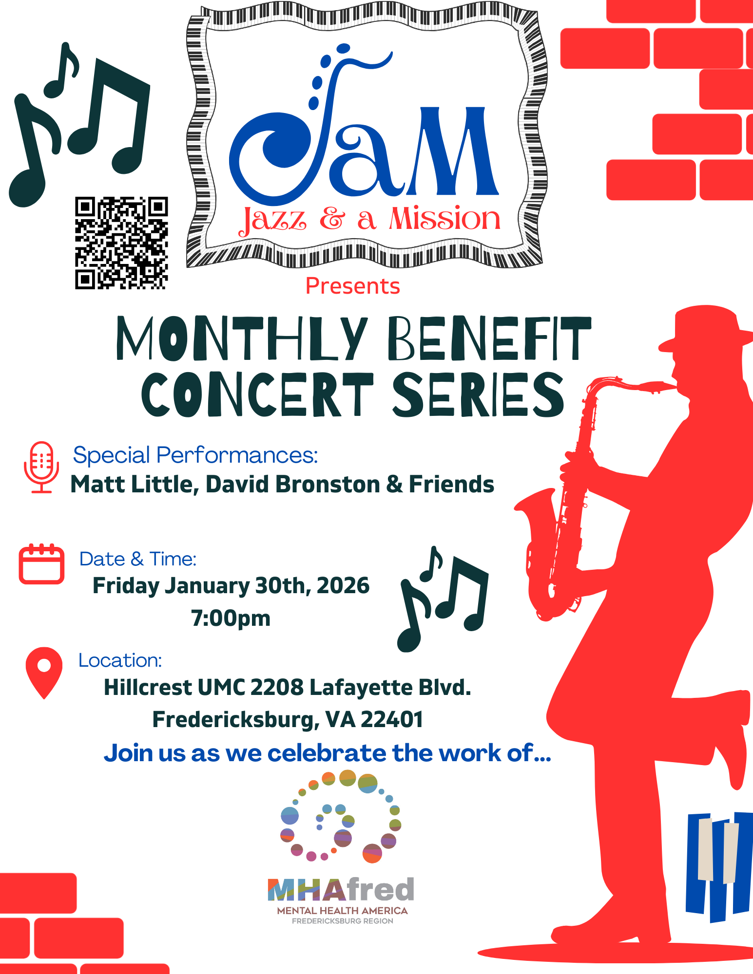 Please join us at Hillcrest United Methodist Church for a jazz performance by Matt Little, David Bronston and Friends. Any audience donations would benefit our nonprofit and help us to continue giving free mental health resources to our community.